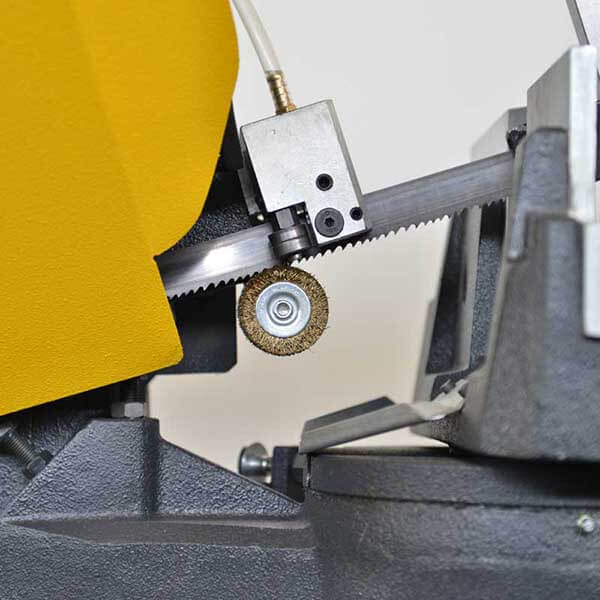 - Бесступенчатая регулировка скорости ленточнопильного полотна в стандартной комплектации. Позволяет точно настроить режимы резки под конкретную заготовку, тем самым увеличив срок службы ленточнопильного полотна.