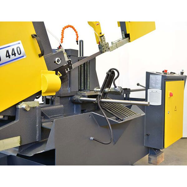 Станок Beka-Mak BMSO 440 относится к классу автоматических ленточнопильных станков. При внешних габаритах: длина 2630 мм, ширина 1110 мм и высота 1710 мм, станок весит 1440 кг. Главный привод отличается повышенной мощностью (3000 Вт). Это позволяет проводить пакетную резку заготовок при скорости пилы от 20 до 100 метров в минуту. Участие оператора в производственном процессе сведено к минимуму. Так, зажим и подача заготовки осуществляется посредством гидравлического давления, помимо этого проводится плавное гидромеханическое натяжение рабочего полотна и его подъём на необходимую высоту. BMSO 440 позволяет проводить и регулировку хода рабочей оснастки, что гарантирует высокое качество реза.