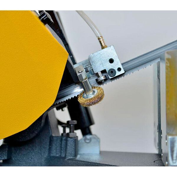 - Гидромеханическая система натяжения ленточнопильного полотна с манометром обеспечивает надёжную фиксацию рекомендуемого значения натяжения.