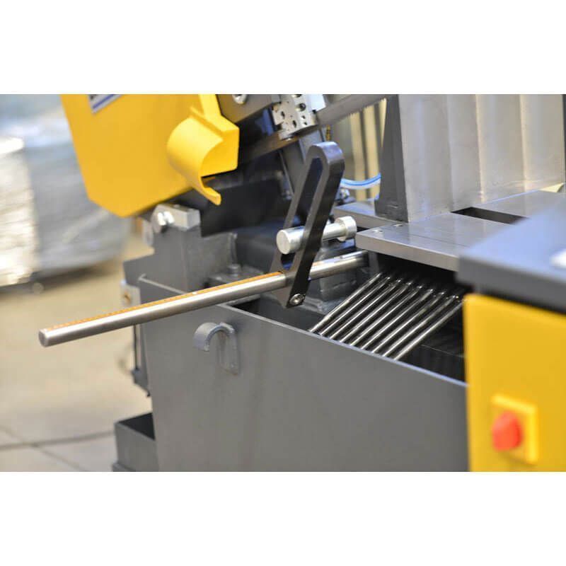 Полуавтоматический ленточнопильный станок BMSY 440 турецкого производителя Beka-Mak с длиной ленточного полотна 5200 мм, высотой рабочей поверхности 735 мм и скоростью резания 20-100 м/мин используется для производительной резки профильного и сплошного металлопроката. Подходит как для нарезки пакета заготовок, так и профилей большого размера. Возврат пильной рамы в исходное положение и зажим заготовки происходит с помощью гидравлики, после команды оператора.