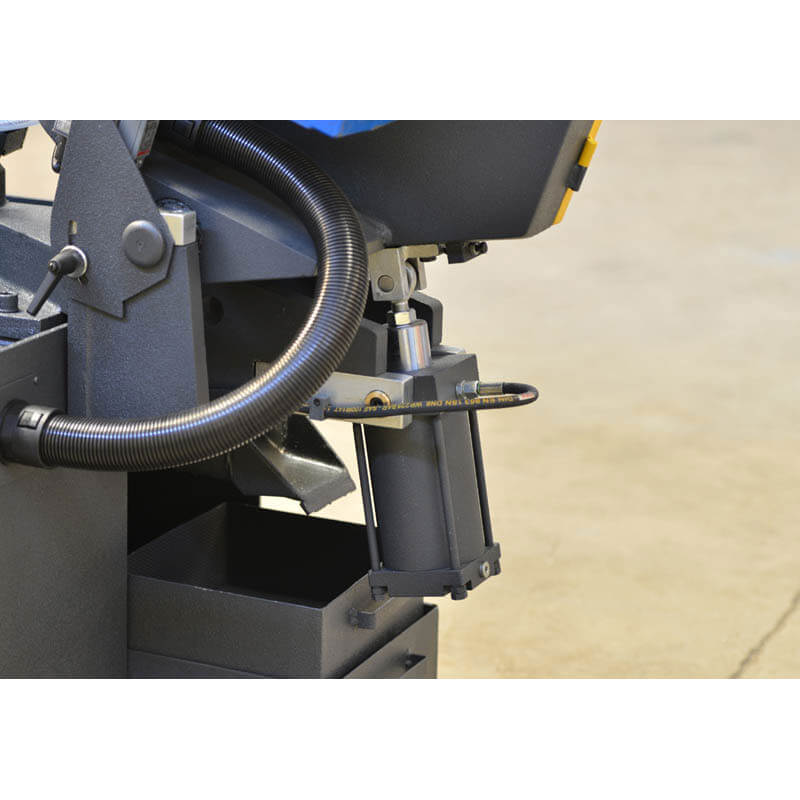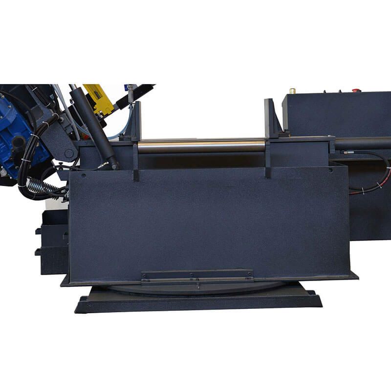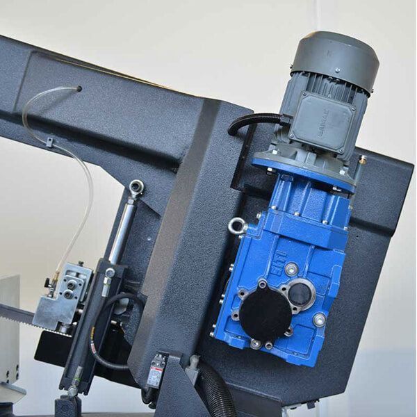- Бесступенчатая регулировка скорости ленточнопильного полотна в стандартной комплектации. Позволяет точно настроить режимы резки под конкретную заготовку, тем самым увеличив срок службы ленточнопильного полотна.