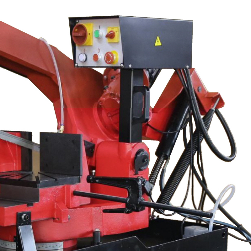 - Его можно использовать для установки скорости режущей ленты, а также для включения / выключения машины. Мы можем выбирать между двумя скоростями режущей ленты 36 и 72 м / мин.