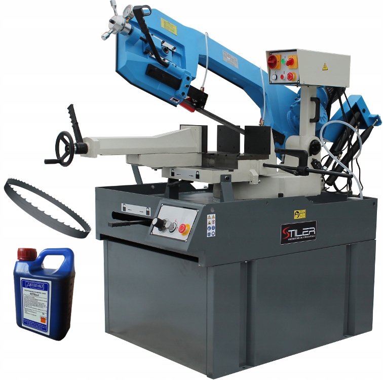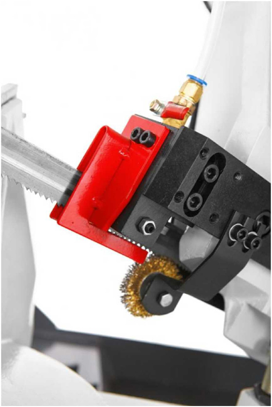 - В нижнем положении рычага (после резки материала) привод ленточной пилы и система охлаждения автоматически отключаются.