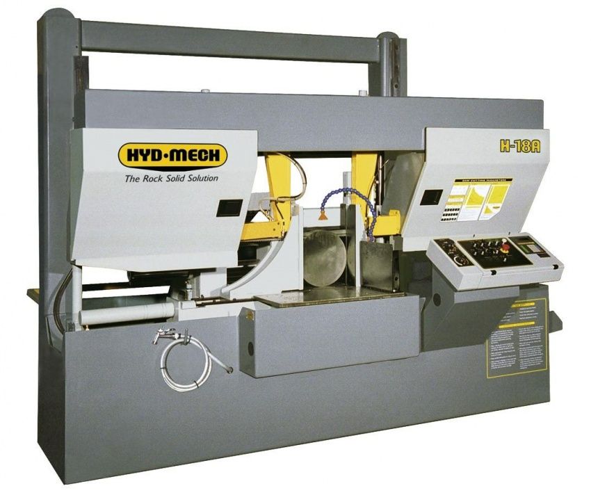 Гидравлическая система – давление в гидравлической системе обеспечивается насосом мощностью 2,25 кВт. За счёт усилия, возникающего при подаче под давлением гидравлической жидкости, поток которой распределяется с помощью трехпозиционных распределителей, осуществляются такие операции как: управление тисками, подъем и опускание пильной рамы, регулировка натяжения режущего полотна, перемещение транспортировочного челнока и кронштейна для направляющей. Доступ к насосу, двигателю и гидравлическому коллектору с распределителями осуществляется достаточно легко путем открытия дверцы отсека гидравлической аппаратуры. Длительность простоя при этом максимально сокращается.