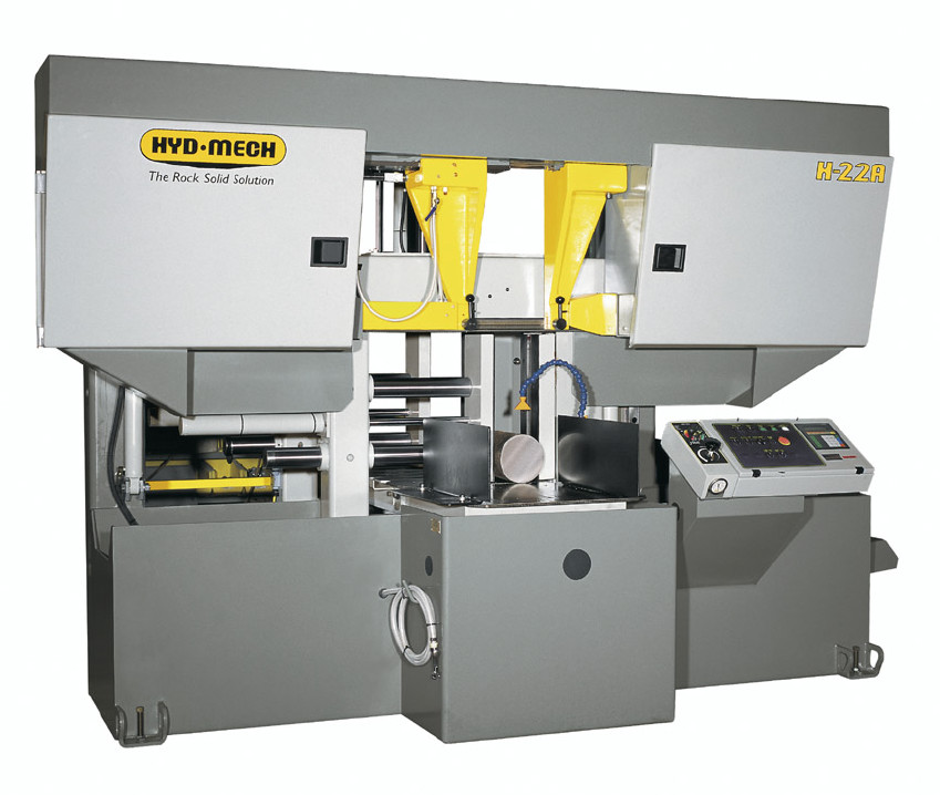 Система прямой вертикальной подачи вниз, разработанная компанией Hyd-Mech позволяет легко регулировать усилие резания и скорость подачи пильной рамы. На экран ПЛК выводится информация о скорости подачи для точной регулировки.