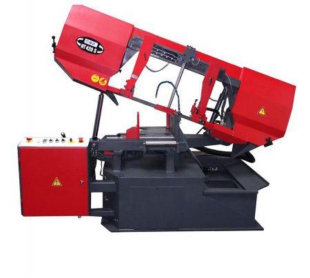 Ручной ленточнопильный станок H300M предназначен для резки замкнутым ленточным полотном различных материалов, сплавов цветных металлов, конструкционных, высоколегированных, нержавеющих и быстрорежущих сталей. Управление скоростью опускания рамы адаптивное и осуществляется автоматически через контур обратной связи, в зависимости от толщины материала. Гидравлический цилиндр, установленный в передней части, осуществляет подъем и опускание пильной рамы, увеличивает жесткость рамы и стабильность резки. Предусмотрен поворот тисков на угол +/- 45°. Рама станка неповоротная.