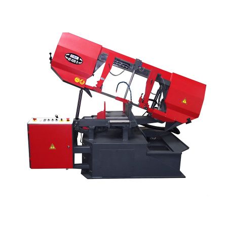 Ленточнопильные станки HDT300S предназначены для резки замкнутым ленточным полотном различных материалов, сплавов цветных металлов, конструкционных, высоколегированных, нержавеющих и быстрорежущих сталей. Управление скоростью резки адаптивное и осуществляется автоматически через контур обратной связи, в зависимости от толщины материала. Гидравлический цилиндр, установленный в передней части, осуществляет подъем и опускание пильной рамы, увеличивает жесткость рамы и стабильность резки. Ленточнопильные станки HDT300S имеют двое поворотных тисков и поворотную пильную раму. Тиски имеют гидравлический зажим. Фиксация рамы и натяжение ленты пилы также осуществляется посредством гидравлики.
