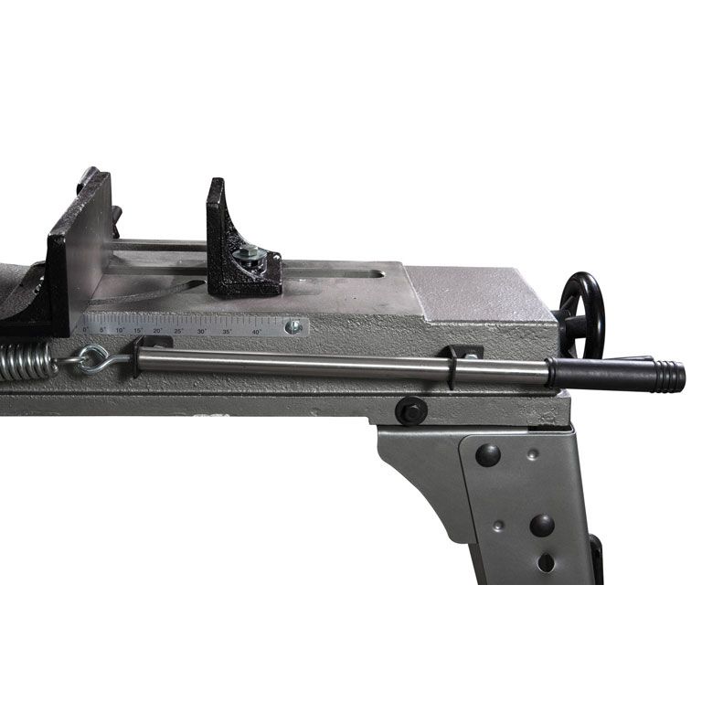 Модель представляет собой ленточнопильный станок да пиления металлических заготовок. Станок рассчитан на мелкосерийное производство, пригоден для индивидуальной работы. Модель рассчитана на обработку металлических заготовок диаметром до 125 мм, оснащена тяжелой рамой, которая в процессе работы опускается в ручном режиме непосредственно оператором. Конструкция станка соответствует оборудованию американского типа, предназначена для распила заготовок под прямым углом. Диапазон плавной регулировки угла поворота консоли станка (губок тисков) 0-450.