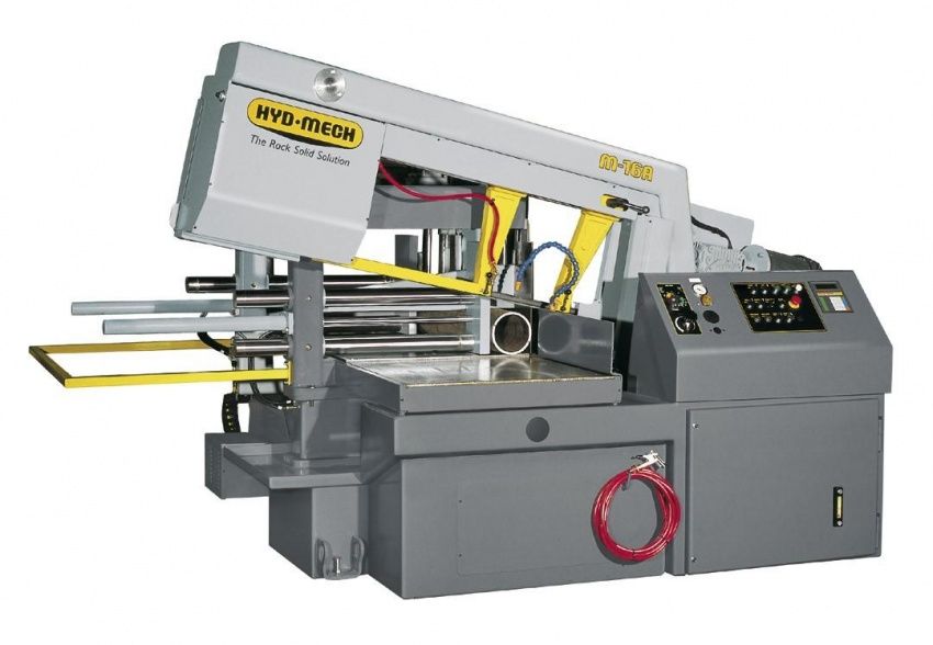 Гидравлическая система – давление в гидравлической системе обеспечивается насосом мощностью 2,2 кВт. За счет усилия, возникающего при подаче под давлением гидравлической жидкости, поток которой распределяется с помощью трехпозиционных распределителей, осуществляются такие операции как: управление тисками, подъём/опускание и поворот пильной рамы, регулировка натяжения режущего полотна, а также перемещение транспортировочного челнока. Доступ к насосу, двигателю и гидравлическому коллектору с распределителями осуществляется достаточно легко путем открытия дверцы отсека гидравлической аппаратуры. Длительность простоя при этом максимально сокращается.