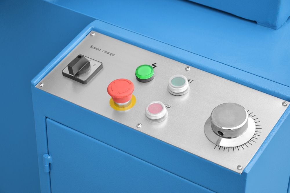 Станок имеет выключатель, останавливающий машину после окончания резки, также имеет аварийный выключатель и серию микровыключателей, выключающих станок, например, когда открыта крышка с ременным приводом или откроется крышка пилы.
