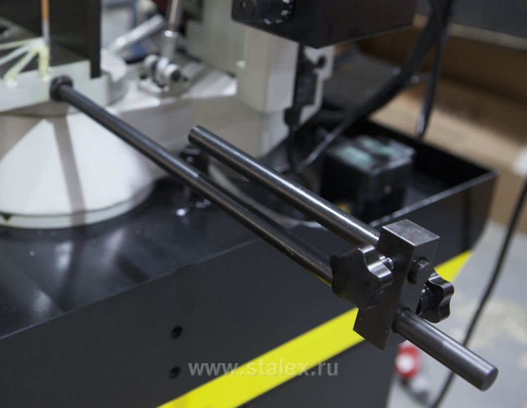 Используя данную модель имеющую быстро регулируемые тиски для резки под углом, поворачивается рама, а не заготовка. Тиски с системой быстрого отвода ускоряют процесс смены заготовки (ускоренный отвод подвижной губки происходит без вращения маховика). Зажим заготовки осуществляется тисками вручную, подача заготовки - также вручную. Наличие система СОЖ в стандартной комплектации – позволяет добиться высокой производительности. Кроме того в модели Stalex BS-280G вынесен на приборную панель – инвентор опускания рамы.