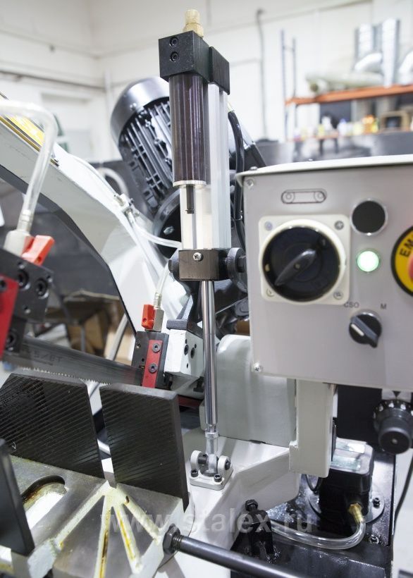 На станках с гидроразгрузкой, процесс резки (запуск пилы – опускание рамы – остановка пилы) происходит в автоматическом режиме благодаря гидравлической системе. Подъём рамы осуществляется оператором вручную. Станок Stalex BS-280G позволяет делать распилы заготовок диаметром до 220мм.