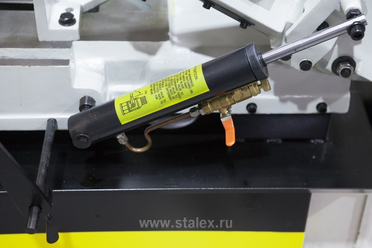 Пила опускается под собственным весом, станок оборудован дросселируемым гидравлическим цилиндрами подач, который позволяет автоматически подстраивать скорость опускания пильной рамы в зависимости от профиля заготовки, что обеспечивает оптимальные режимы распила.