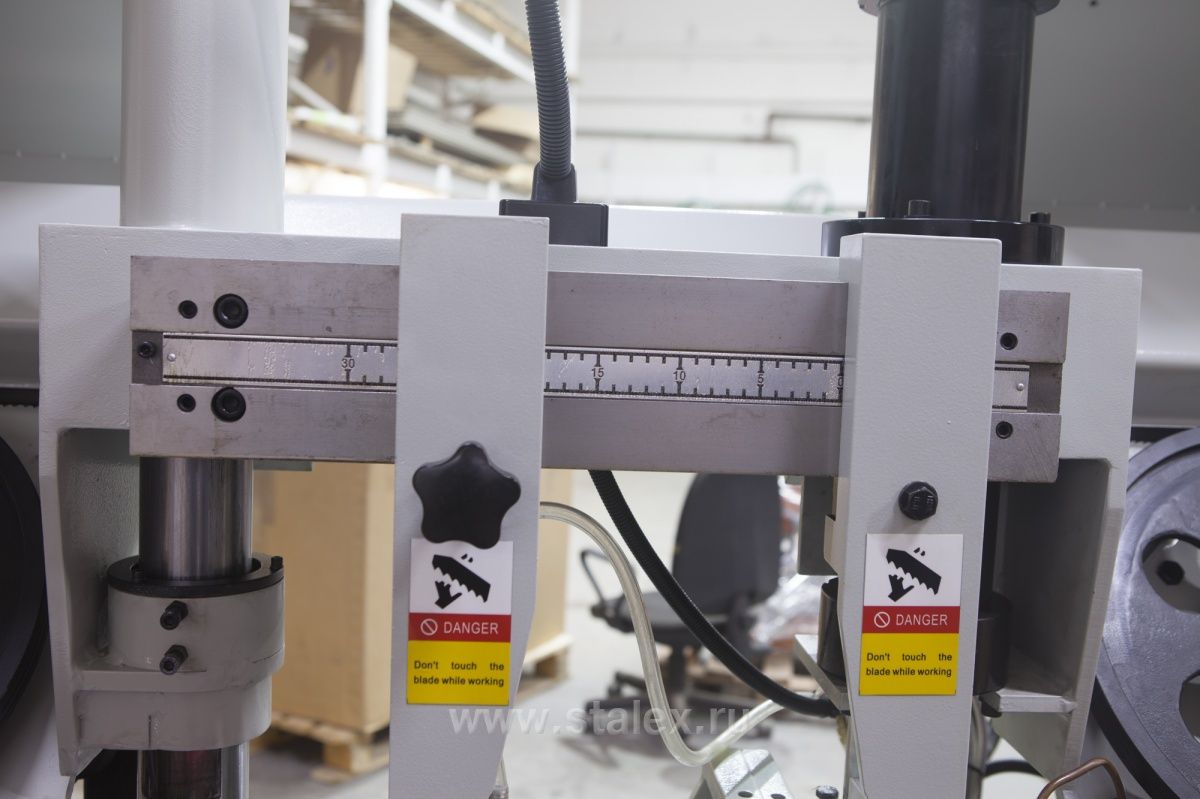 Две направляющие перемещающиеся по салазкам, для регулировки жесткости полотна относительно размера заготовки. Лампа освещения |