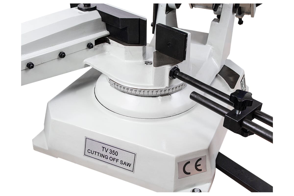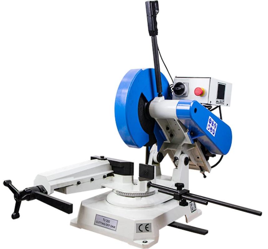 Отрезная маятниковая пила по металлу FABTEC TV-350 используется для мелкосерийной резки металлических профилей размером до 120х80 мм и труб диаметром до 120 мм;