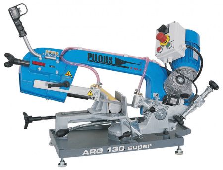 Жесткая конструкция отлита из серого чугуна. В отличие от базовой модификации ARG 130 подача рамы происходит под тяжестью собственного веса с возможностью регулирования усилия на ручке подачи за счет специальной пружинной системы. По окончании реза вращение пильной ленты прекращается автоматически. Для более быстрого распила заготовок малого сечения пружинная система настраивается для ручной работы, ослаблением усилия пружин. Рама станка поднимается вручную.