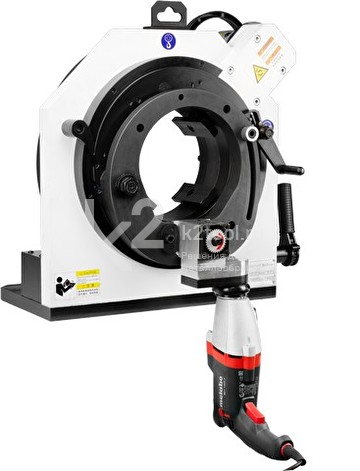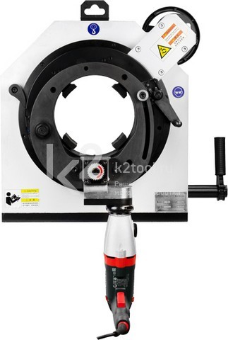 Резка выполняется дисковой фрезой из быстрорежущей стали. Механизм подачи фрезы из начального положения имеет рукоятку с фиксатором в рабочем положении что позволяет удобно контролировать важный момент "врезки в трубу". Отрезка трубы производиться за один полный оборот привода вокруг оси.