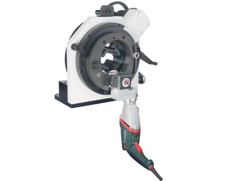 Резка на труборезе Aotai OSE-420 выполняется дисковой фрезой из быстрорежущей стали, возможно снимать фаску 30°, 37°, 45° с труб применяю специальную фрезу. Механизм подачи привода фрезы по орбите осуществляется в ручную, что позволяет удобно контролировать процесс резки. Рез трубы производится за один полный оборот привода вокруг оси. Вращение вокруг оси выполняется вручную вращением маховика, который расположен со стороны зажимных кулачков и позволяет оператору не находится в зоне обработки.