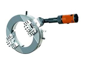 Преимущества: конструкция состоит из двух половин, устанавливаемых на заготовку перпендикулярно. Центрирование производится при помощи кулачков. Обработанная кромка отличается улучшенным качеством. Возможна эксплуатация на смонтированных трубопроводных системах в труднодоступных местах.