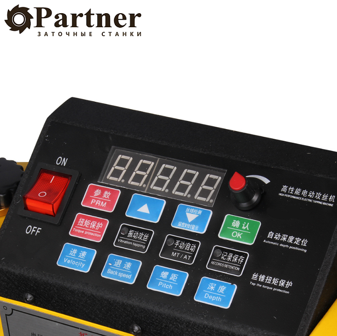 - Программирование скорости прямого и обратного вращения,крутящего момента, глубины и шага нарезаемой резьбы;