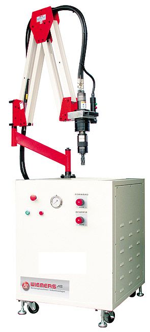 Пневматический резьбонарезной манипулятор. Подходят для нарезки резьбы М2-М27 мм. Такие манипуляторы пользуются большой популярностью, т.к. с нарезают основные резьбы. Небольшие габариты и вес позволяют легко разместить инструмент даже на небольшом по площади рабочем месте. Манипуляторы легко подключить в цеху, оборудованном системой сжатого воздуха.