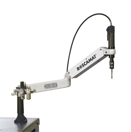 Станок состоит из балансирной подвижной составной консоли, имеющей возможность вращения вокруг вертикальной опоры. Наличие балансира, представляющего собой газовый амортизатор, а также подвижной консоли, состоящей из двух частей, позволяет всегда удерживать шпиндель строго перпендикулярно обрабатываемой поверхности. Шпиндель имеет быстроразъемное соединение, а вращение шпинделя происходит за счет сжатого воздуха. Воздух подается к шпинделю через станцию воздухоподготовки, установленную на консоли. Метчики или плашки вставляются в шпиндель при помощи специальных быстросъемных держателей инструмента.