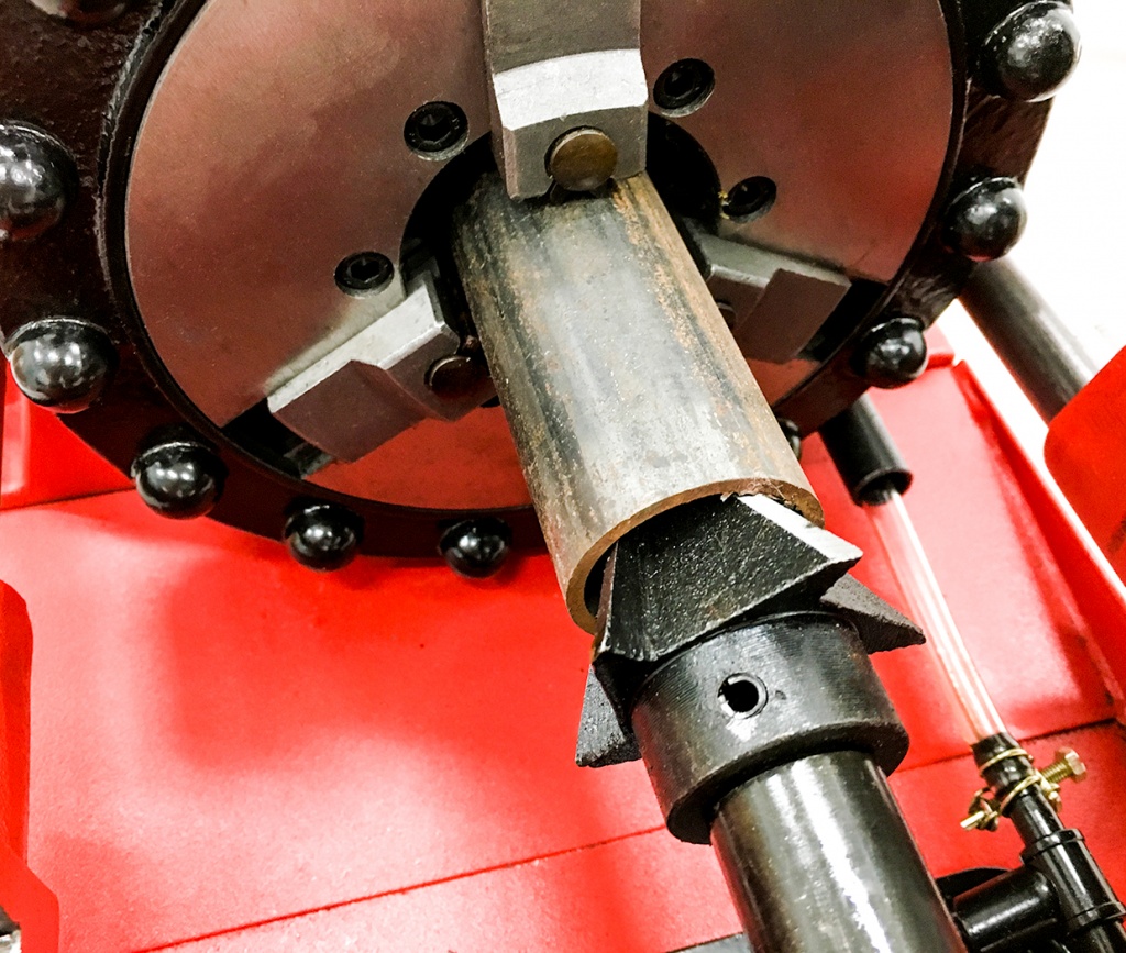 - Центрирующий зажимной патрон (осевое выравнивание трубы)