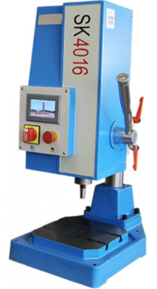 SK 4016 - станок с NC-контроллером для нарезания резьбы с помощью быстрозажимных патронов в диапазоне М3 - М16 с ручным и автоматическим режимом работы; В станок заложена библиотека обрабатываемых материалов, позволяющая быстро в одно касание выбрать правильный крутящий момент, что позволяет избегать поломку метчика; В окне контроля можно регулировать скорость вращения, глубину нарезаемой резьбы, силу вращения; Режим нарезания резьбы со стружкодроблением позволяет повысить точность резьбы; В базовую комплектацию входит набор резьбонарезных патронов.