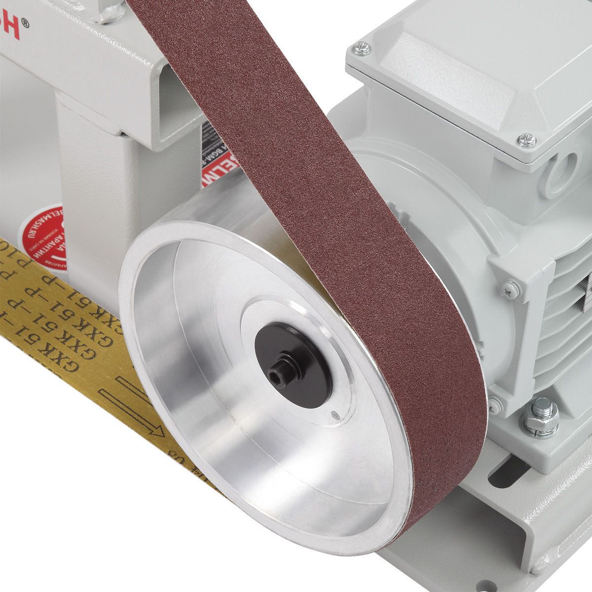 Станок оснащён асинхронным двигателем мощностью 1500 Вт, рассчитанным на длительную стабильную работу в режиме S1. Прямой привод передаёт мощность непосредственно на ленту, что положительно сказывается на эффективности и надёжности работы станка.