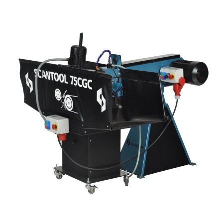Ленточно-шлифовальный станок для бесцентрового шлифования SCANTOOL 75CGC, оснащенный 2-х скоростным двигателем и системой подачи СОЖ, что в совокупности позволяет добиться более высокого качества поверхности и снизить расход шлифовальных лент.