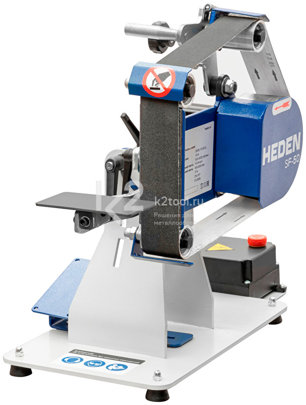 Универсальный станок SF-50 подходит для контактного шлифования металлических деталей как в вертикальном, так и горизонтальном положении шлифовальной ленты.