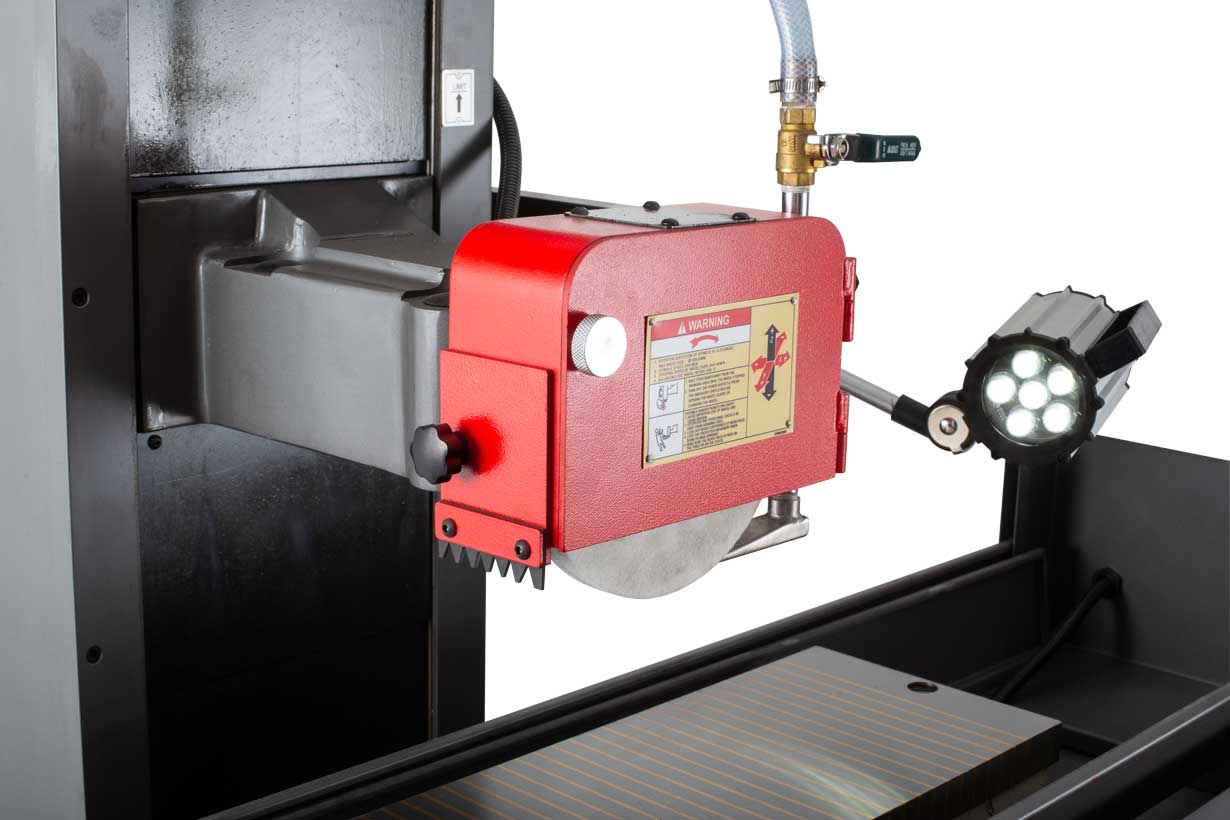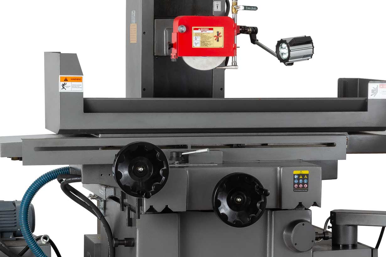 Частота оборотов шпинделя шлифовального круга у JPSG-1020FR постоянна и составляет 2850 об/мин, оптимально подобранный диаметр шлифовального круга - 200 мм. Точность подачи круга к заготовке (одно деление нониуса вертикального перемещения) соответствует классу прецизионного оборудования - 0,005 мм (5мкм). Как и все станки данного класса, JPSG-1020FR оборудован системой автоматической смазки всех критически важных узлов и агрегатов, в том числе и направляющих стола, через предусмотренные смазочные каналы.