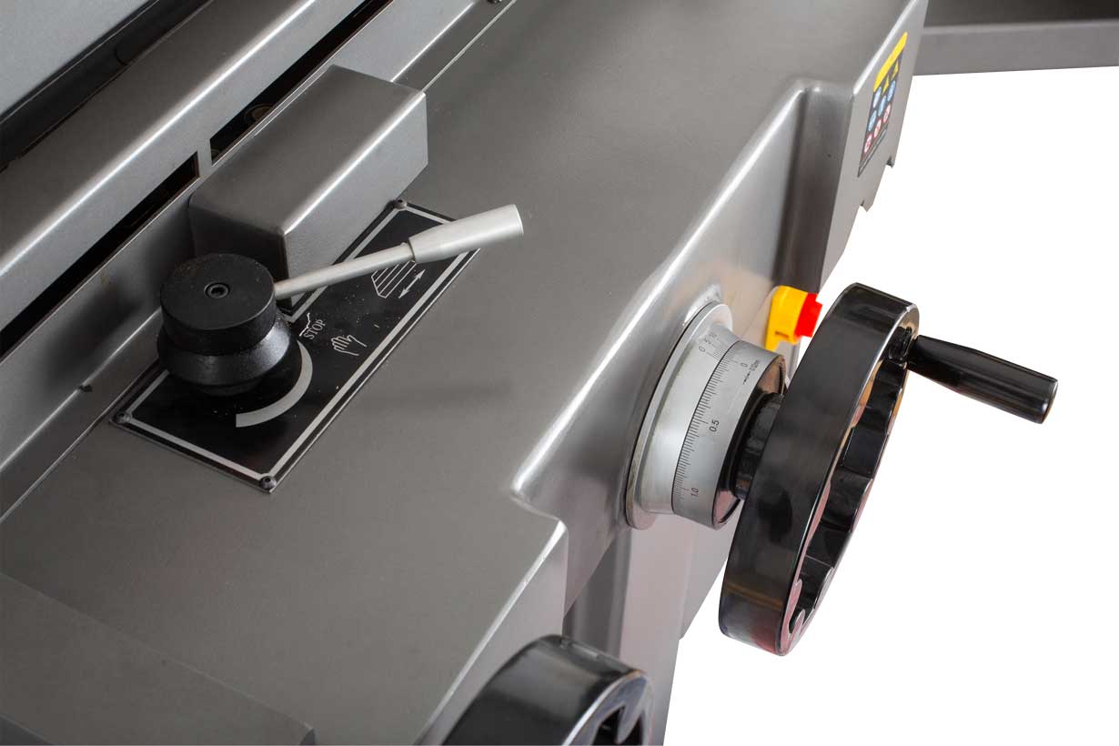 Стол приводится в движение вручную или через гидравлический привод (в правом или левом направлении), скорость плавно изменяется с помощью регулировочного рычага, расположенного на салазках. В поперечном направлении движение стола осуществляется вручную или двигателем через ходовой винт. Шлифовальная голова перемещается вручную маховиком или в автоматическом режиме с помощью серво-двигателя с подачей в диапазоне 0,005 до 0,05мм.