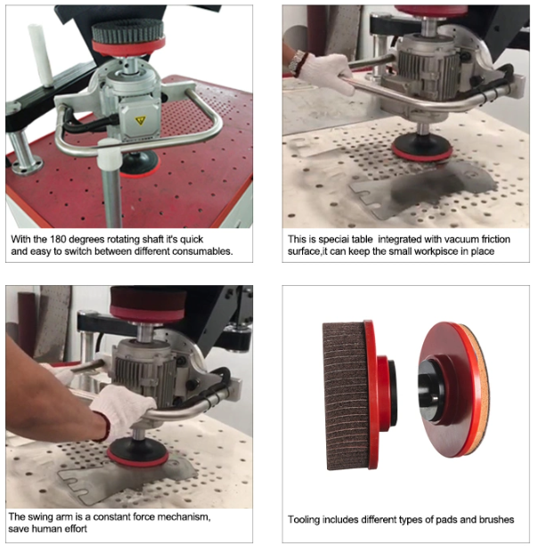 - Две головки шлифовальной станции подходят для различного типа инструмента: ролика, щетки или скотч-пада.