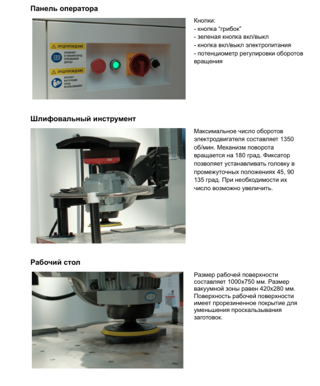 - Станция поворачивается на 180° для быстрого перехода между абразивами (например, с грубой зачистки на финишную полировку).
