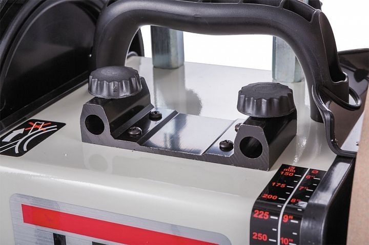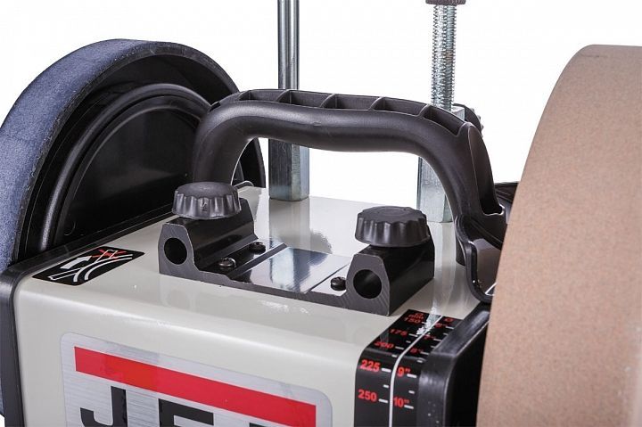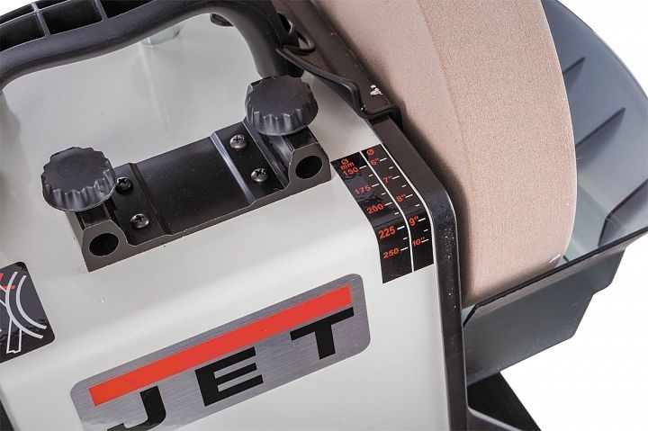 Станок укомплектован кронштейнами-направляющими для работы с использованием вспомогательных приспособлений, большой ассортимент которых представлен под маркой Jet и поставляется штатно или за дополнительную плату.