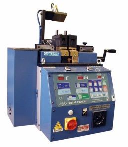 Аппарат стыковой сварки для любого типа металлического полотна с электронным управлением. Ручное управление циклами сварки и отжига. Модель сильно модифицирована, в особенности зажимное устройство и может выдерживать высокие нагрузки. Гильотина входит в поставку.