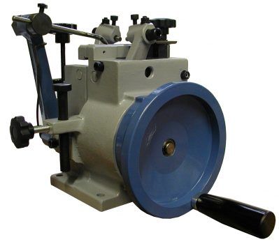 Ручной станок для разводки зубьев ленточных пил. Экономичный и практичный. Выбор типа разводки: вправо, влево или вправо, влево, прямо. Регуляция шага подачи, изгиба зуба и высоты разводки. Настольная модель.