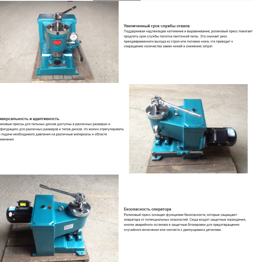 Он может регулировать удлинение пильного полотна, чтобы пильное полотно можно было устойчиво опираться на колесо при пилении древесины, и пильное полотно не вылилось из него. Это подходящий станок для ленточнопильных станков, а также основной вспомогательный станок ленточнопильной машины для всех видов деревообрабатывающих предприятий. Пресс для роликов ленточной пилы в основном используется для роликовой пилы, отрегулируйте натяжение полотна, чтобы полотно пилы было гладко на внешнем крае.