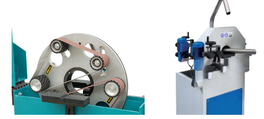 Открытие ремней осуществляется педалью, которая позволяет входить и выходить из трубы, увеличивая срок службы абразивных лент