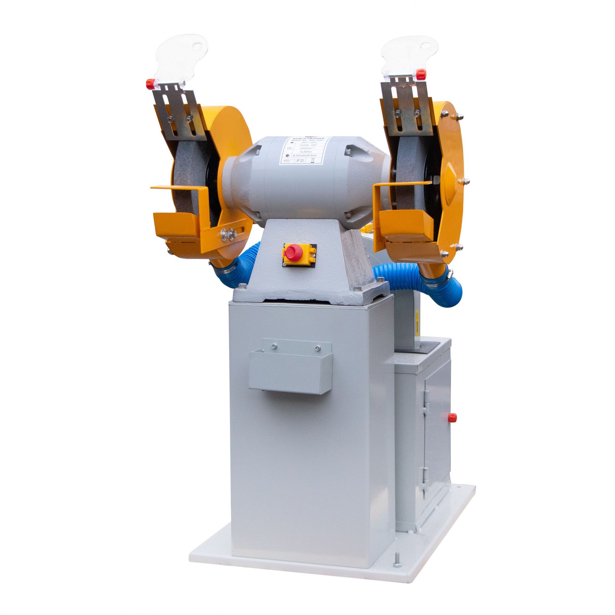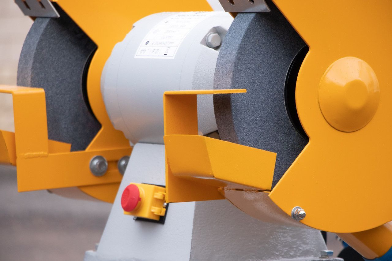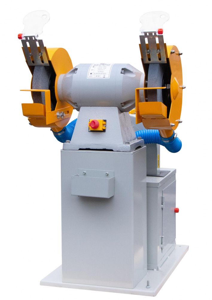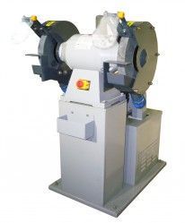Стационарный двухдисковый обдирочно-шлифовальный станок на подставке со встроенным пылесосом. Предназначен как для заточки режущего инструмента, так и для обдирочных работ. Мощная конструкция и трёхфазный электродвигатель предусматривают использование на промышленном, крупносерийном производстве. Наличие встроенного пылесоса улучшает экологичность оборудования, увеличивает срок его службы и облегчает обслуживание. Защитные экраны обеспечивают безопасность при работе на станке. Удобным дополнением является фронтально расположенная ёмкость для охлаждающей жидкости.