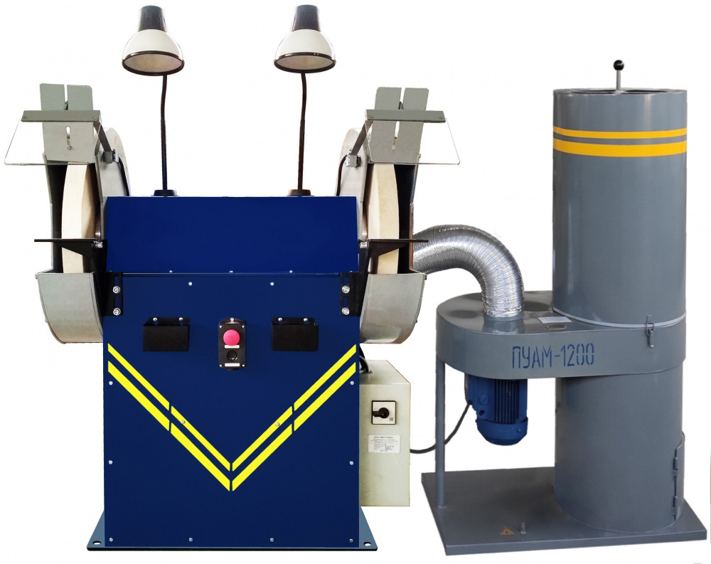 Станок точильно-шлифовальный ТШ-4РБ-П предназначен для обработки изделий из металлических и неметаллических материалов при помощи абразивных кругов и поставляется совместно с пылеулавливающим агрегатом ПУАМ-1200.