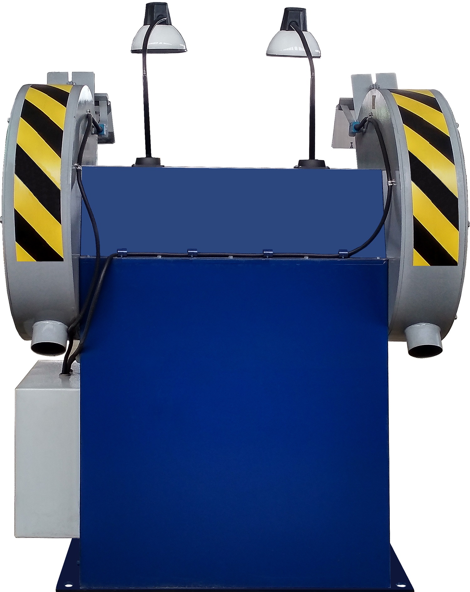 Регулировка упоров по горизонтали и вертикали обеспечивает удобную работу на станке. Установлены съемные металлические ёмкости для охлаждения обрабатываемого материала жидкостью. Защитные кожуха имеют выходные вентиляционные патрубки для подключения пылеулавливающих агрегатов (ПУАМ), позволяющих фильтровать воздух от абразивной пыли в рабочей зоне оператора.