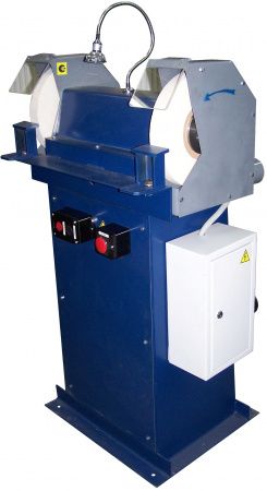 - Вращающий момент от электродвигателя передается через клиноременную передачу на вал, на концах которого закреплены шлифовальные круги. Электродвигатель установлен в тумбе станка.