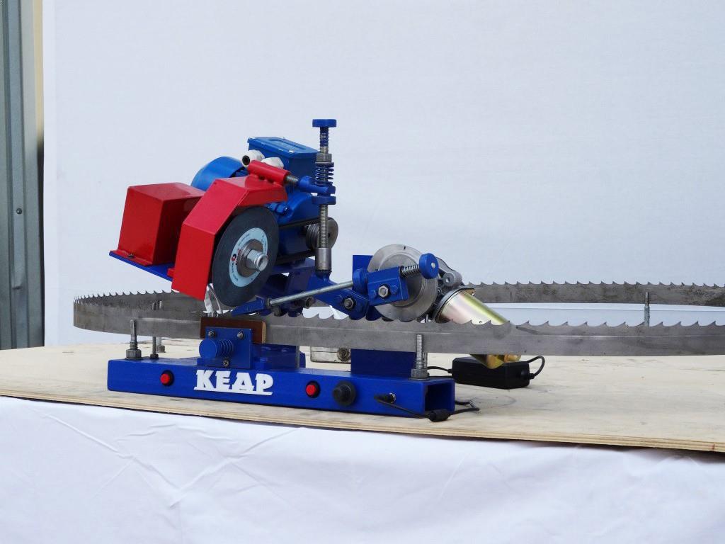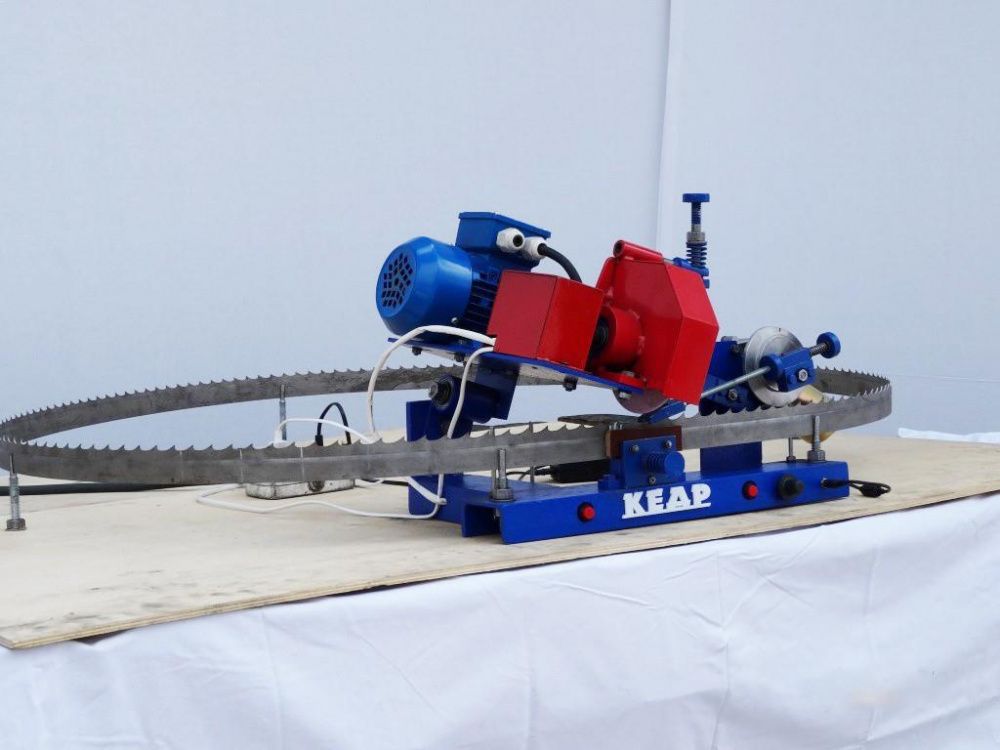Станок укомплектован точильным камнем, положение которого по мере износа легко регулируется ослаблением болта или шайбами. Простая жесткая конструкция, удобное крепление тремя штангами в совокупности с отличным качеством заточки расширяет сферу его применения. Заточное устройство успешно используется в мебельном, деревообрабатывающем, лесопильном производстве, подходит частникам. Востребовано там, где есть ленточные пилорамы малой и средней мощности.