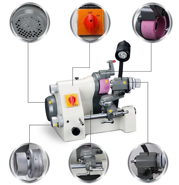 - На станке можно произвести заточку фрез различной формы (концевые, радиусные, с обратным углом наклона) по торцу