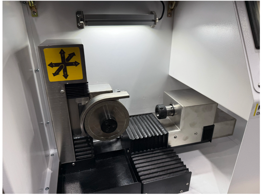 - Четыре управляемые оси позволяют легко, быстро и с высокой точностью затачивать фрезы и сверла различных типов.