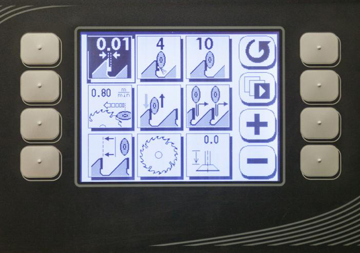 ПАНЕЛЬ УПРАВЛЕНИЯ Позволяет выполнять все рабочие функции. Процесс заточки управляется при помощи микропроцессора. С панели управления задается все параметры заточки: