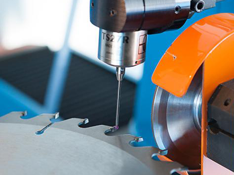 СИСТЕМА НАСТРОЙКИ ШАГА ЗУБЬЕВ ПИЛЫ Станок оснащен автоматической, при помощи электронного щупа RENISAW, системой настройки шага зубьев пилы – это позволяет с высокой точностью настраивать съем с изношенной грани зубьев пил, как постоянным так и переменным шагом. Минимальная величина съема материала с изношенной грани зуба пилы равна 0,01 мм. |