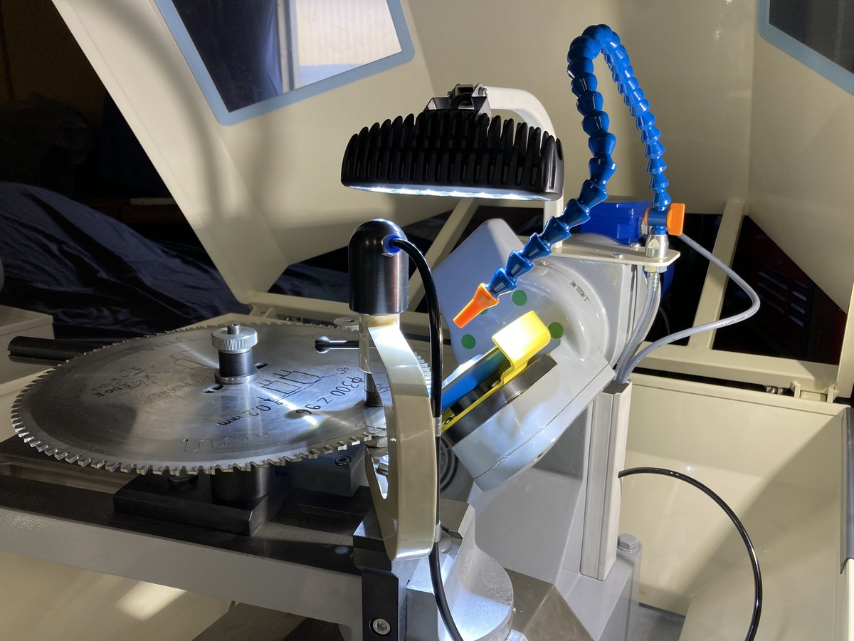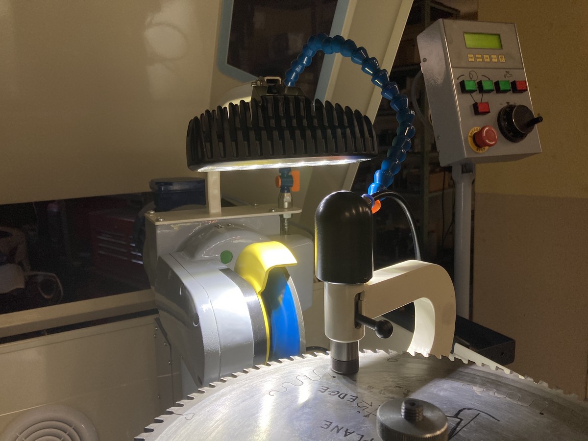 Заточной станок Typ 3000 A позволяет затачивать в автоматическом режиме различные формы зуба (прямой, попеременно-скошенный, трапециавидный и.др.) с различным шагом. Заточка производится по передней и задней грани зуба дисковой пилы.